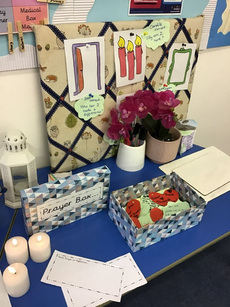 We use prayer spaces in school that we have created to support our worship too. Please see Prayer Spaces page for more information about these.