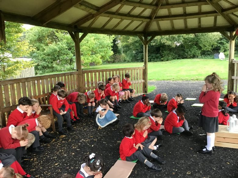 Collective worship in our school doesn't just happen inside. Weather permitting, we conduct worships outside too.